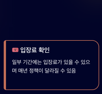 A. 일부 기간에는 입장료가 있을 수 있으며 매년 정책이 달라질 수 있습니다.