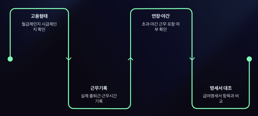 이럴 때는 근무표, 출퇴근 기록, 급여명세서를 같이 보는 게 좋아요. 수당이 맞는지 확인할 때는 감으로 판단하는 것보다 기록을 나란히 비교하는 방식이 훨씬 정확해요.