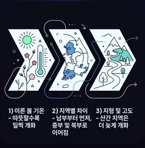 | 지형·고도 | 산간 지역은 상대적으로 늦을 수 있음 |