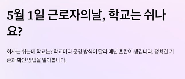 A. 아니에요. 5월 1일 근로자의날 휴무 학교 여부를 볼 때는 급식, 하교 시간, 돌봄, 방과후까지 함께 확인해야 실제 일정 관리가 쉬워져요.