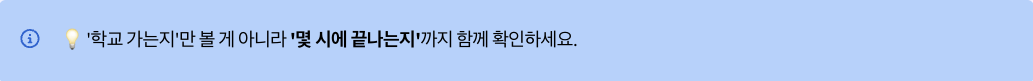- 학교 알림장과 가정통신문에서 휴무 또는 수업 여부를 확인해요.